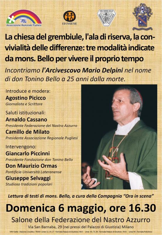 il 6 maggio a Milano un convegno organizzato dall’Associazione regionale Pugliesi e dalla Federazione Provinciale dell'Istituto del Nastro Azzurro di Milano con la partecipazione dell’Arcivescovo Mario Delpini, riflette sulla figura e l’eredità del “Vescovo degli ultimi”