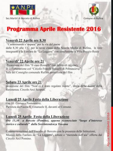 Sez. A.N.P.I. di Rufina "Martiri di Berceto" e Comune di Rufina presentano: Aprile Resistente 2016.