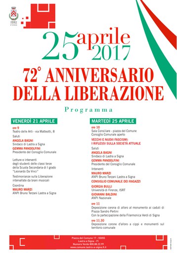 72° Anniversario della Liberazione, il programma a cura del Comune di Lastra a Signa per riflettere e commemorare.