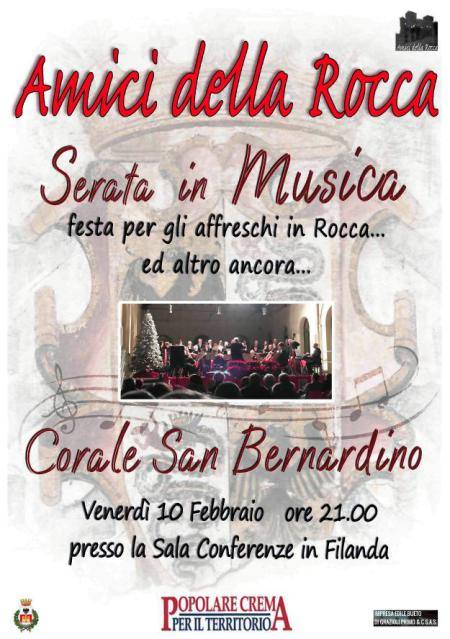 Venerdì 10 febbraio, alle 21, nella sala conferenze della filanda, l'associazione AMICI DELLA ROCCA, invita tutti a festeggiare in musica il prossimo avvio dei lavori di restauro degli affreschi della torre sud-orientale della nostra rocca