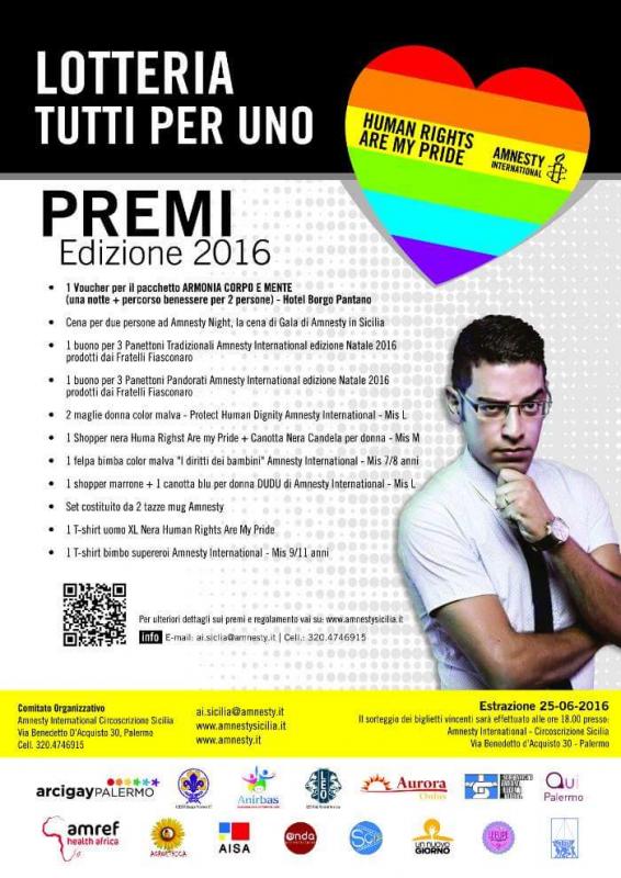 PALERMO – Forte del successo delle precedenti edizioni, anche quest'anno la Circoscrizione Sicilia di Amnesty International lancia la lotteria “Tutti per uno!”.