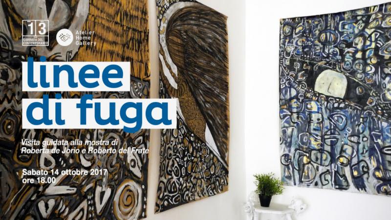 Sabato 14 ottobre 2017 l'Atelier Home Gallery torna ad aderire alla "Giornata del Contemporaneo", iniziativa ideata e promossa da AMACI - Associazione dei Musei d'Arte Contemporanea Italiani. Per l'occasione, la galleria organizza una visita guidata alla mostra in corso "Linee di fuga - Trasfigurazioni verso Altro" con gli artisti Roberta de Jorio e Roberto del Frate, il quale darà modo inoltre di scoprire le tecniche di disegno digitale da lui utilizzate per parte delle opere in esposizione.