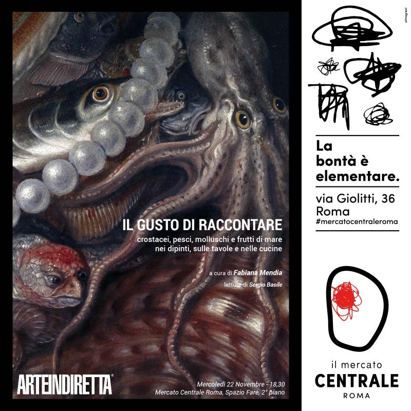ARTEINDIRETTA presenta mercoledì 22 novembre alle ore 18,30, presso lo Spazio FARE del Mercato Centrale, IL GUSTO DI RACCONTARE – crostacei, pesci, molluschi e frutti di mare nei dipinti, sulle tavole e nelle cucine, progetto a cura di Fabiana Mendia, con letture di Sergio Basile (ingresso libero). L’appuntamento, promosso da Mercato Centrale, è il primo di un ciclo di incontri che intende approfondire i rapporti tra Arte e Cibo attraverso la trattazione parallela di letture di dipinti (nature morte, scene di genere, di mercati, di banchetti, di cucine) e approfondimenti di testi gastronomici, dall’antico al contemporaneo.
