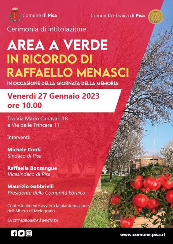 Venerdì 27 gennaio si celebra il Giorno della Memoria, istituito con la legge del 20 luglio 2000 dal Parlamento Italiano che ha aderito alla proposta internazionale di dichiarare il 27 gennaio giornata di commemorazione delle vittime dell'Olocausto durante la Seconda guerra mondiale. Per celebrare la ricorrenza il Comune di Pisa, in collaborazione con la Comunità Ebraica di Pisa, ha organizzato un significativo programma di iniziative.