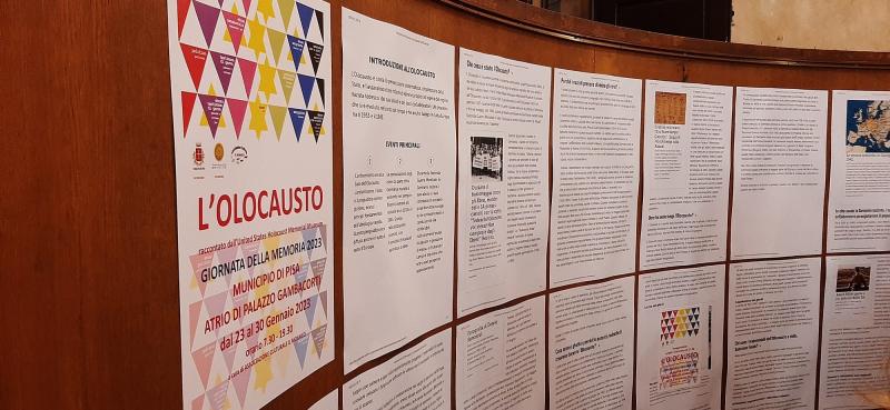 In esposizione nell’atrio di Palazzo Gambacorti il materiale disponibile e scaricabile dalla Sezione “Enciclopedia dell’Olocausto” del sito https://encyclopedia.ushmm.org/enz dell’United States Holocaust Memorial Museum (USHMM), il museo ufficiale dell'Olocausto degli Stati Uniti d'America a Washington, inaugurato nel 1993, che provvede alla documentazione, allo studio e all'interpretazione della storia dell'Olocausto. Inoltre la sua azione è dedicata a prevenire i genocidi, a difendere la dignità umana e a rafforzare la democrazia in tutto il mondo.