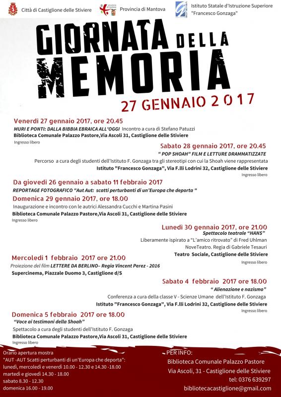 L’amministrazione comunale di Castiglione delle Stiviere anche quest’anno, in occasione della Giornata della Memoria,