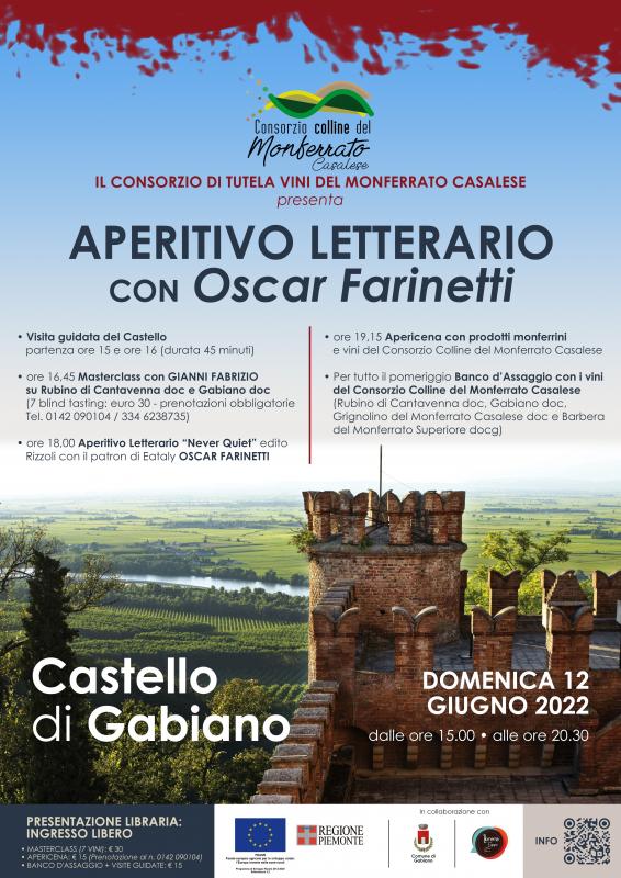 Aperitivo con Oscar Farinetti, domenica 12 giugno al Castello di Gabiano, per un pomeriggio enoico-letterario promosso dal Consorzio di tutela vini Colline del Monferrato Casalese, col patrocinio del Comune di Gabiano e in collaborazione con la Libreria Coppo di Casale Monferrato, nell’ambito del Psr 3.2 B 2022.
