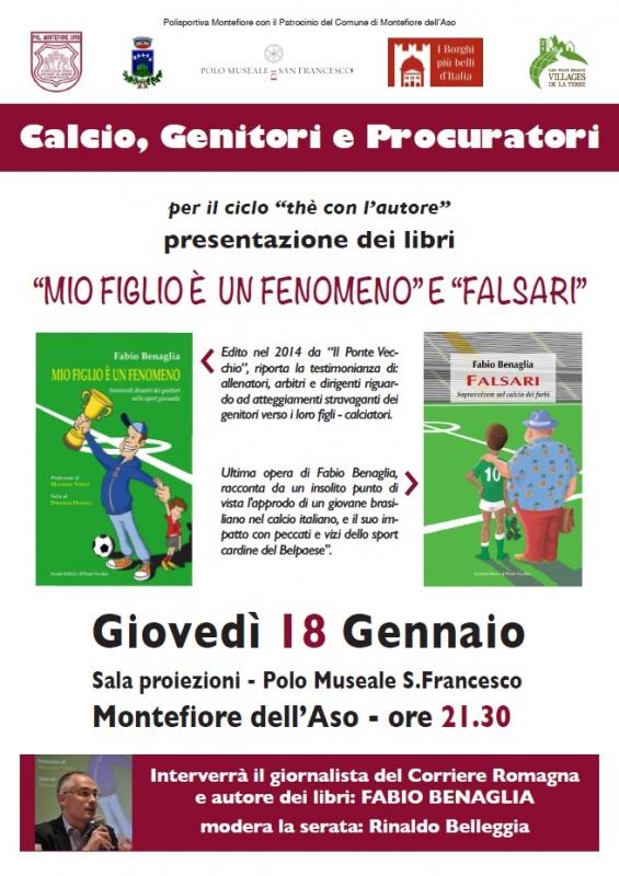 Nella serata di giovedì 18 gennaio (ore 21.30) il giornalista sportivo del Corriere di Romagna, Fabio Bengalia sarà ospite a Montefiore dell'Aso (sala proiezioni - Polo Museale S. Francesco) per presentare le sue ultime due opere: Falsari - Sopravvivere nel calcio dei furbi e Mio Figlio è Un Fenomeno (editore "Il Ponte Vecchio).