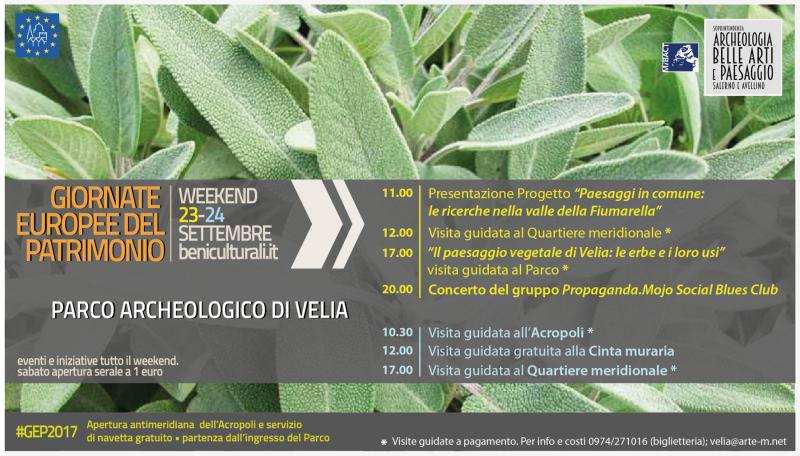 A Velia sono in programma tante iniziative e per l'occasione negli orari antimeridiani e nella serata di sabto 23 sarà accessibile anche l'Acropoli, non raggiungibile in seguito all'incendio del giugno scorso dal percorso interno al Parco, grazie a un servizio navetta gratuito con partenza dall’area dell’ingresso del Parco messo a disposizione dalla Soprintendenza ABAP