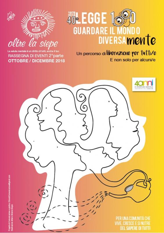 In occasione del quarantesimo anniversario della Legge 180 del 13 maggio 1978 (nota come Legge Basaglia) che sancì la definitiva chiusura dei manicomi, i soggetti che si riconoscono nella cornice di Oltre La Siepe hanno dato vita a una Rassegna di eventi dal titolo: “40° Legge 180. Guardare il mondo DIVERAmente - Un percorso di liberazione per tutti. E non solo per alcuni”.
