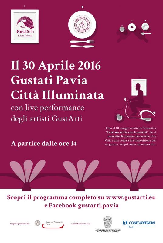 Sabato 30 aprile a Pavia Gustati Pavia Città Illuminata con la live performance degli artisti GustArti.