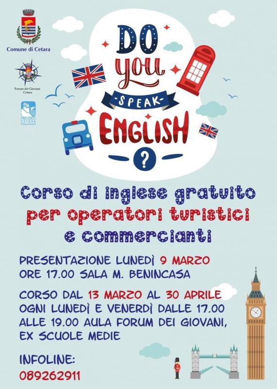 Nell’ambito del progetto “Qualità Cetara”, il prossimo lunedì 9 marzo, dalle 17, alla Sala "M. Benincasa", in collaborazione con il Forum dei Giovani e la Pro Loco di Cetara, il Comune di Cetara presenta il Corso gratuito di lingua Inglese "Do You Speak English?", aperto agli operatori economici del territorio, per rispondere all'esigenza di elevare gli standard di qualità dei servizi di accoglienza turistica sul territorio. Promosso dall’Assessorato al Turismo, l’iniziativa nasce con l'intento di qualificare, attraverso l’aggiornamento della lingua straniera, gli operatori del sistema turistico-ricettivo, ristorativo e commerciale nella parte più immediata e percepibile da parte dei visitatori, fornendo gli strumenti comunicativi utili a indirizzare la propria azione verso il miglioramento dei rapporti con i turisti che raggiungono la nostra città. Nel tentativo di realizzare un approccio commerciante-esercente più pratico e veloce, il corso diventa soprattutto un’occasione per rafforzare la vocazione turistica del borgo costiero, nel senso dell’accoglienza, puntando al perseguimento di obiettivi di efficacia dei servizi erogati e, nello stesso tempo, ad offrire spunti per incrementare le potenzialità di incoming straniero.
