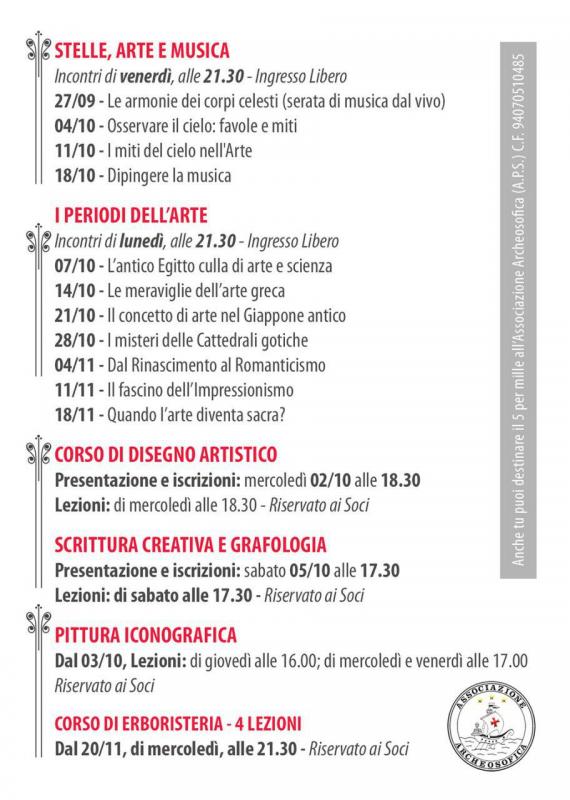 Presentazione ed iscrizioni: Sabato 5/10 alle 17,30Lezioni: di Sabato dalle 17,30 alle 19,00