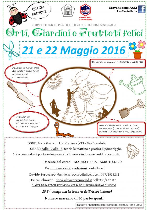 tenute da un esperto agrotecnico Mauro Flora su: tecniche di impianto di alberi e arbusti, irrigazione intelligente, alloggi e rifugi per gli insetti utili alle coltivazioni, norme generali di potatura (o non).