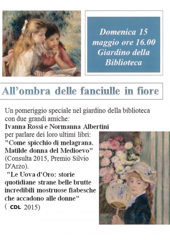 Ivanna Rossi che presenterà Normanna Albertini e il suo ultimo libro"Come spicchio di melagrana. Matilde donna del Medioevo"(Consulta 2015, Premio Silvio D'Arzo).