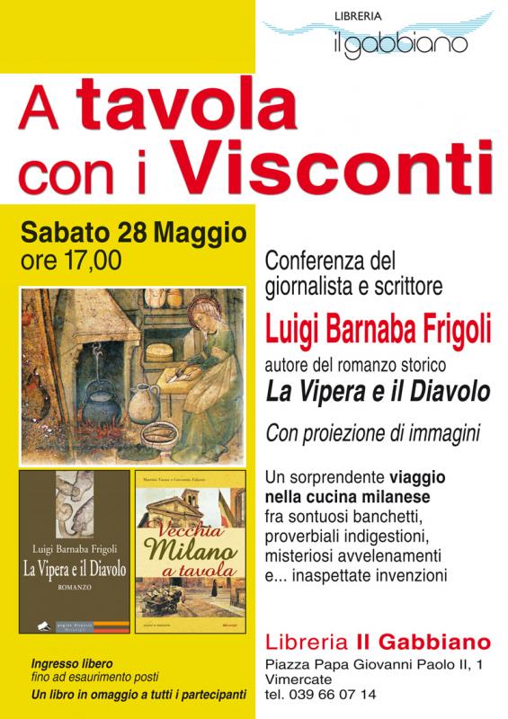 Il giornalista e scrittore Luigi Barnaba Frigoli, autore del fortunato romanzo storico di ambientazione viscontea "La Vipera e il Diavolo" terrà la conferenza