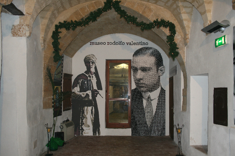 ll Museo Rodolfo Valentino di CASTELLANETA farà conoscere al visitatore il giovane italiano dello sguardo magnetico divenuto, il primo autentico divo del cinema. Nell’immaginario collettivo la sua figura appare indissolubilmente legata al mito del latin lover, in virtù anche della morte tragica e prematura che da semplice creatura dello schermo ne fece un fenomeno della storia del costume. I pannelli esposti nella sala del Grande Amatore fanno riflettere sui molteplici aspetti della forza seduttiva del grande divo: le pose, gli sguardi, le movenze che lo vedono ora languido e nobile, gaucho, cosacco, sceicco, gentiluomo: questi i ruoli dei personaggi che lo impongono sullo schermo, consentendogli di scalzare i modelli maschili in auge e di conquistare il posto privilegiato del cuore del pubblico femminile. Nella seconda parte del museo, invece, avrà campo libero il “Mito” così come lo conosce il mondo intero, declinato attraverso i film da lui interpretati, la sua vita pubblica, un autentico culto nel quale la divinità centrale e indiscussa era il bel tenebroso latino, uno stereotipo in grado di ammaliare stuoli di ammiratrici, i rapporti con i colleghi, fatti di stima e invidia, e l’atto finale, il suo funerale, uno degli eventi di massa più importanti della storia del secolo appena trascorso. set fotografico “Foto Nostalgia” v’immortalerà in una foto con la riproduzione degli abiti usati da Rodolfo Valentino.