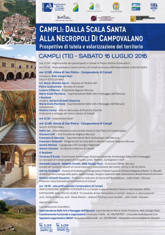 L'evento "Campli: dalla Scala Santa alla necropoli di Campovalano. Prospettive di tutela e valorizzazione del territorio” nasce da una sinergia tra diversi enti: al fianco della Soprintendenza Belle Arti e Paesaggio dell'Abruzzo e della Regione Abruzzo aderiscono all'iniziativa il Consiglio Regionale d’Abruzzo, il Comune di Campli, l'Università degli studi "D'Annunzio", il Consorzio BIM, l'Ordine degli Architetti di Teramo, il Collegio dei Geometri di Teramo e l'associazione culturale “Zefiro” di Campli.