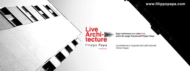 Live architecture nasce da una approfondita ricerca dell’architettura da parte dell’artista, che analizza le sue forme e la luce su di esse. Dopo la mostra personale di fotografia e video “Archai” fondata su questa ricerca, e del video “L’anima dei luoghi”, Papa cerca di andare oltre addentrandosi sempre di più, a livello progettuale, nella ricerca tesa alle forme architettoniche soffermando la sua attenzione al fruitore delle sue opere. Da queste riflessioni prende vita il progetto video “Live architecture”. Un viaggio di un anno, in cui l’artista agendo in un atto “performativo” filma un’architettura a settimana collegandosi in “diretta” tramite il social network “Facebook” alla sua fan page. A fine anno tutti i video saranno uniti in un unico montaggio, che darà vita al prodotto finale.Live architetture vuole essere un progetto, un viaggio, un esperienza “live” dell’agire dell'artista documentata e condivisa sul web. La creazione dell’opera d’arte in diretta “social”. Questa interazione con i social porta alla contaminazione di essi nell'arte contemporanea. Importante l'elemento della condivisione in diretta che enfatizza e amplifica l’esperienza di interazione del fruitore con l'opera. Il mondo web diventa strumento di condivisione, porta d'accesso verso l’essenza delle forme architettoniche che Papa vuole scrutare e analizzate in tempo reale. Il video finale, rappresenta il diario di viaggio, che diventa opera.