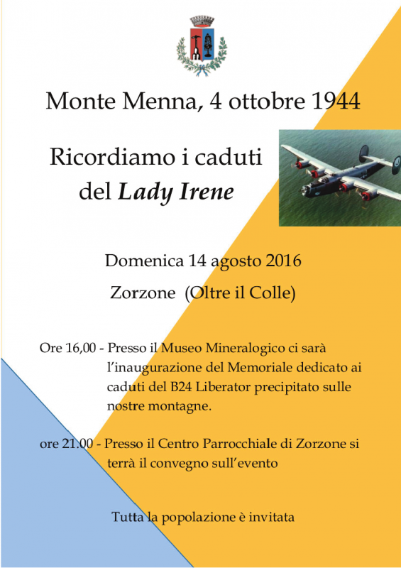 Ore 16.00 - Inaugurazione Memoriale dedicato ai caduti del B24 Liberator precipitato sulle nostre montagne