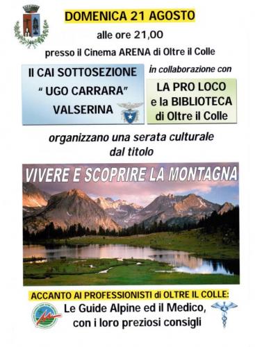 organizza una serata culturale: VIVERE E SCOPRIRE LA MONTAGNA.