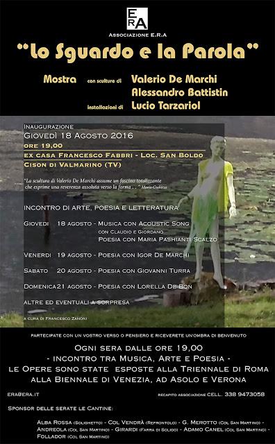 Lucio Tarzariol, Valerio De Marchi e Alessandro Battistin espongono le loro opere in Loc San Boldo presso la ex casa dell'onorevole Francesco Fabbri - San Boldo, Inaugurazione Giovedì 18 Agosto 2016 ore 19.00