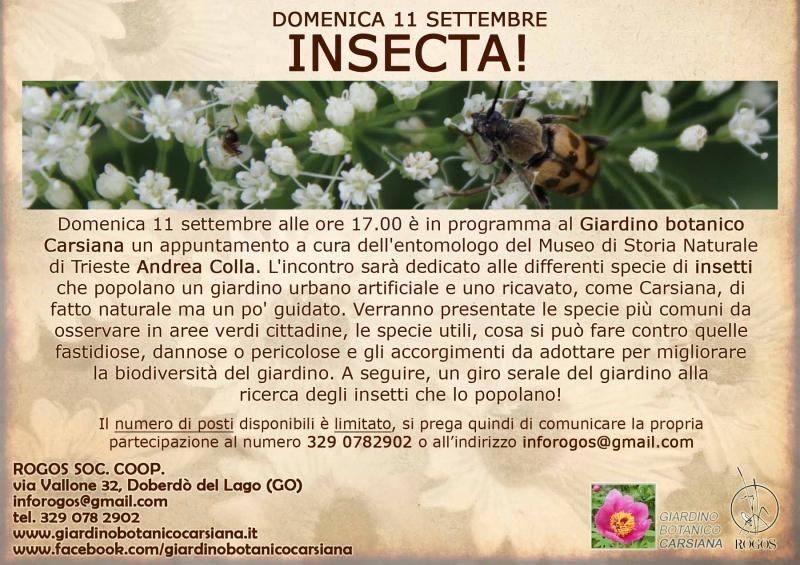 Domenica 11 settembre alle ore 17.00 è in programma al Giardino botanico Carsiana un appuntamento a cura dell'entomologo del Museo di Storia Naturale di Trieste Andrea Colla.