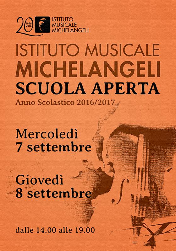 Nelle giornate di mercoledì 7 e giovedì 8 settembre 2016 dalle 14.00 alle 19.00 l'Istituto Michelangeli apre le porte all'iniziativa Scuola Aperta: due pomeriggi in cui la cittadinanza è invitata a trovarci nella nostra sede di Via Armellini 13 per vedere la struttura, scoprire gli strumenti musicali, assistere a lezioni individuali, collettive e di propedeutica musicale. Ma non solo!