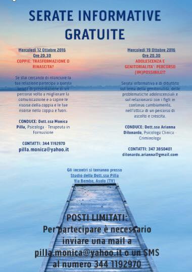 La Dott.ssa Monica Pilla, offre una serie di serate nel suo studio, situato nell'affascinante centro storico di Asolo. I temi trattati saranno: