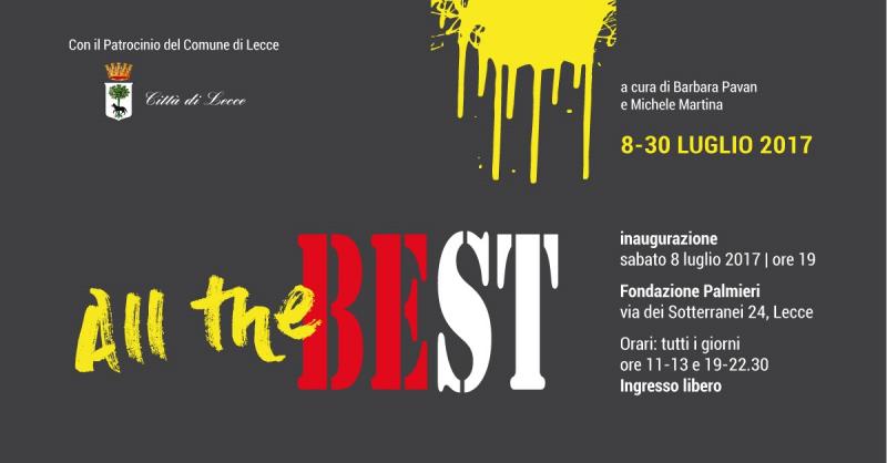 Sabato 8 luglio 2017, alle ore 19, inaugura ALL THE BeSt, la mostra di Stefano Bergamo, meglio noto con l’acronimo BeSt con il quale firma i lavori di street art. Il progetto allestito presso la Fondazione Palmieri Lecce, in via dei Sotterranei 24, curato da Barbara Pavan e Michele Martina, con il patrocinio del Comune di Lecce, presenta e documenta dieci anni di opere dell’artista: un percorso di pop art che si snoda attraverso lavori su tela, installazioni, street art e digital work.