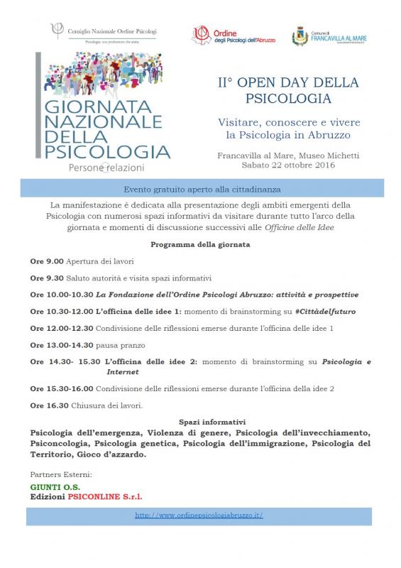 L'appuntamento abruzzese si inserisce all’interno del programma della Giornata Nazionale della Psicologia, promossa dal Consiglio Nazionale dell’Ordine e in continuità con essa quanto ad intendimenti.