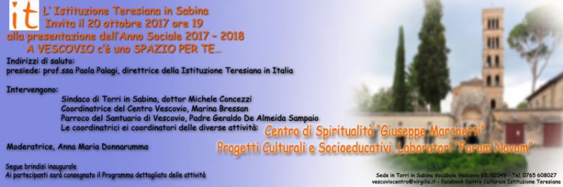 Ci auguriamo di incontrarvi tutti il 20 ottobre alle ore 19 a Vescovio nella sede dell'Istituzione Teresiana, come da invito allegato