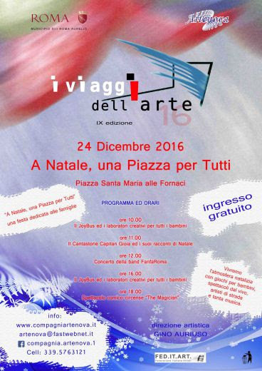 La Carovana della Gioia della Scuola di Pace sarà la vigilia di Natale a piazza Santa Maria alle Fornaci, vicino San Pietro, nell’ambito della manifestazione “I Viaggi dell’Arte”.