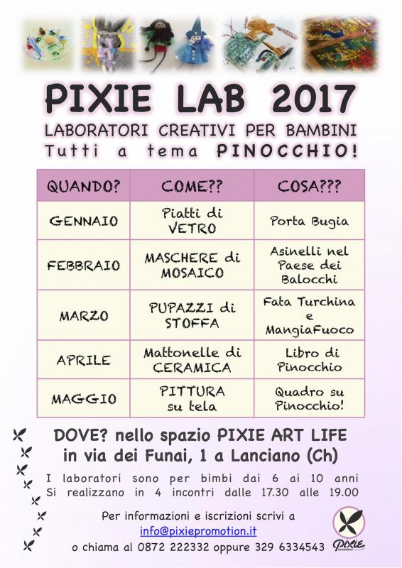 Dal 10 gennaio iniziano 5 fantastici laboratori ludico creativi per bambini nello spazio Pixie Art Life in via dei Funai, 1 – Lanciano (Ch) per condurre i piccoli artisti alla scoperta dell’artigianato tradizionale. Filo conduttore di tutti i laboratori è la mitica favola di Pinocchio! Attraverso le avventure e i personaggi del celebre libro di Collodi, i piccoli artisti imparano a Gennaio con l'artista Nino Luca a realizzare un "porta-bugia", cioè un piattino di vetro porta-candele, ispirandosi alle rinomate bugie del burattino di legno. Poi a Febbraio, il mese di Carnevale, ognuno crea la propria la maschera (colorata con la tecnica del mosaico) per trasformarsi in Asinello festoso del Paese dei Balocchi! A Marzo con Maga Macré le manine dei bimbi si impegnano a creare i pupazzi di stoffa della Fata Turchina e di Mangiafuoco, due dei più famosi personaggi incontrati da Pinocchio durante le sue peripezie. Come già sperimentato anche l'anno scorso, ad Aprile i bimbi fanno mattonelle in ceramiche, modellate con Debora Vinciguerra, come se fossero pagine illustrate del libro di Collodi. E per finire in bellezza a Maggio, insieme ad Antonio Russo, con il laboratorio di pittura su tela si vanno a rappresentare le emozioni suscitate dalla favola più celebre d'Italia.