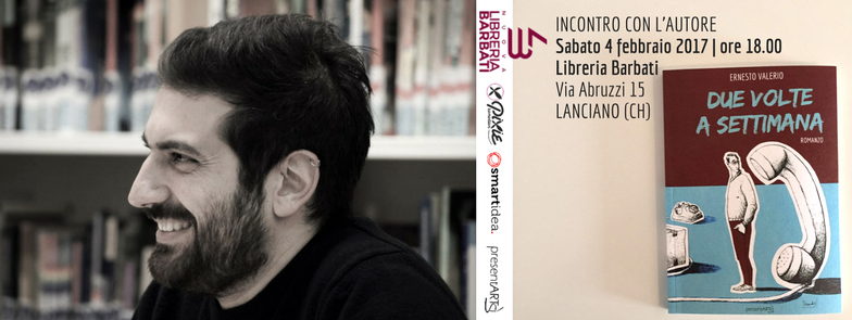 A causa della recente emergenza meteo e alla luce dei recenti fatti di cronaca che hanno colpito la nostra regione, la presentazione del romanzo "Due Volte A Settimana" dello scrittore frentano Ernesto Valerio è stata rinviata a sabato 4 febbraio sempre a partire dalle ore 18.00 presso la Nuova Libreria Barbati di Lanciano. Vi chiedo gentilmente di aggiornare la notizia da voi pubblicata in merito a questo appuntamento