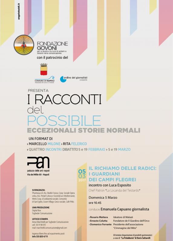 L'incontro di domenica 5 marzo, che si terrà, alle 10.45, negli spazi del PAN – Palazzo delle Arti di Napoli, sarà condotto dalla giornalista Emanuela Capuano e avrà come eloquente titolo «Il richiamo delle radici: i guardiani dei Campi Flegrei».