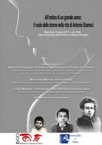 Mercoledì 8 marzo alle 10 presso l’Archivio di Stato di Oristano in piazza Ungheria 11, dove un’ interessante mostra realizzata dall’Istituto archivistico sulla carriera scolastica di Antonio Gramsci, documentata nei registri delle scuole elementari di Ghilarza e in quelli del Ginnasio – Liceo De Castro di Oristano, farà da sfondo al convegno All’ombra di un grande uomo: il ruolo delle donne nella vita di Antonio Gramsci. Nell’occasione sarà distribuito un interessante opuscolo che descrive i documenti esposti. La relazione d’esordio è della neo direttrice dell’Archivio di Stato di Oristano Michela Poddigue, Antonio Gramsci da studente a studioso: il percorso formativo nei documenti dell’Archivio di Stato di Oristano; seguirà quello dell’antropologa Marinella Marras Storie di donne a Ghilarza nei primi decenni del Novecento e infine Luigi Manias con Antonio Gramsci. L’universo femminile degli affetti.