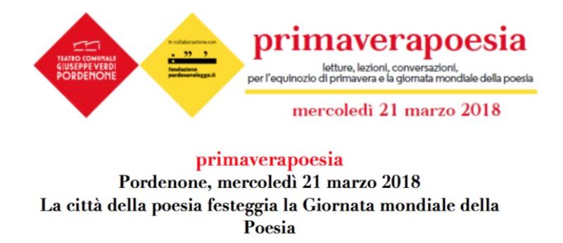 Alle 18.00, nel foyer del Teatro Verdi si prosegue con Happy hour poetico, uno spazio coordinato da Roberto Cescon per festeggiare l’equinozio di primavera e la Giornata mondiale della poesia ascoltando le voci di alcuni tra i poeti più interessanti di un territorio vasto, tra Veneto e Friuli Venezia Giulia. In programma letture di Antonella Bukovaz, Ivan Crico, Guido Cupani, Igor De Marchi, Fabio Franzin, Luigi Natale, Silvia Salvagnini, Piero Simon Ostan, Mary Barbara Tolusso, Giovanni Turra e Giacomo Vit per riunire lingue e generazioni diverse, accomunate da un grande lavoro sulla parola poetica, capace di intonare il presente alle nostre voci. Per questo speciale Happy hour di Primaverapoesia sarà aperto per l’occasione “Licinio - Bar del Teatro”.