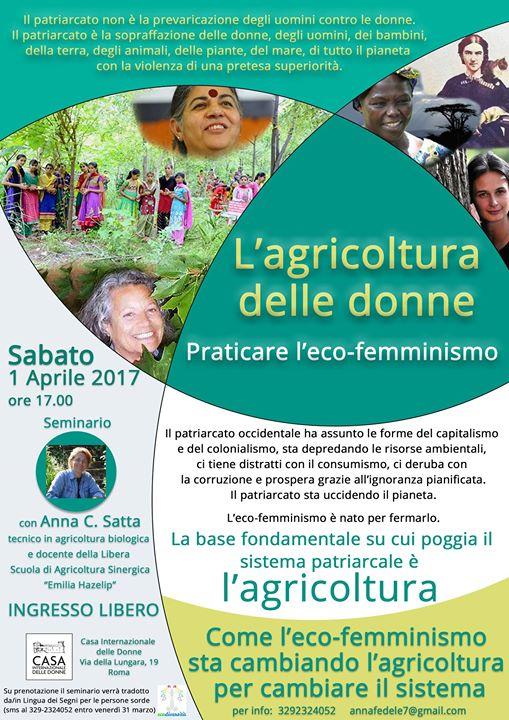 Il patriarcato non e' la prevaricazione degli uomini sulle donne.Il Patriarcato e' la sopraffazione degli uomini, delle donne, dei bambini, degli animali, della terra, delle piante, del mare, di tutto il pianeta con la violenza di una pretesa superioritàIl seminario tenuto da Anna C. Satta (tecnico in agricoltura biologica e docente della libera scuola in agricoltura sinergica "Emilia Hazelip" e' gratuito e reso accessibile anche per i non udenti con servizio di interpretariato da in LIS gratuito previa prenotazione obbligatoriaA seguito del seminario che ha inizio alle ore 17.00 ci sarà un dibattito aperto sul tema
