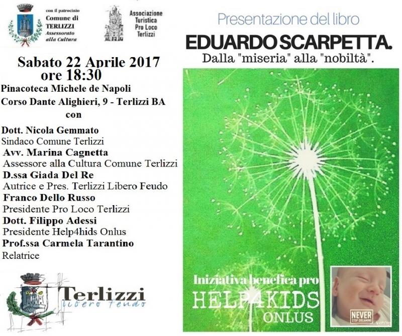 L'Associazione di Promozione Sociale "Terlizzi Libero Feudo" con il patrocinio del Comune di Terlizzi e dell'Associazione Pro Loco, presenta il 22.04.2017 a Terlizzi, il saggio letterario - EDUARDO SCARPETTA Dalla "miseria" alla "nobiltà" di Giada Del Re.