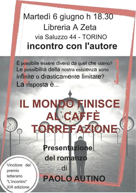 Martedì 6 giugno, alle ore 18.30, a Torino, presso la Libreria A Zeta (via Saluzzo, 44), Paolo Autino presenterà il suo romanzo IL MONDO FINISCE AL CAFFE' TORREFAZIONE.