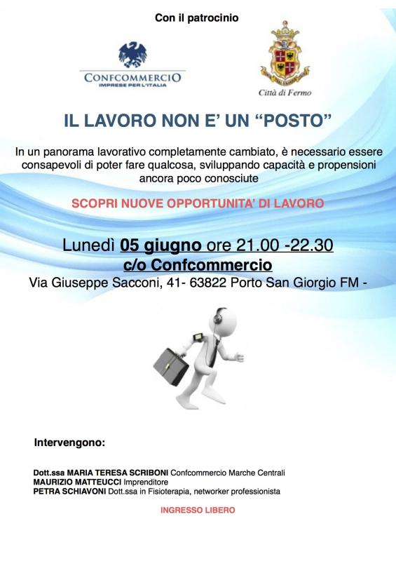 il 5 Giugno dalle 21:00 alle 22:30, si terrà il convegno “Il Lavoro non è un Posto”