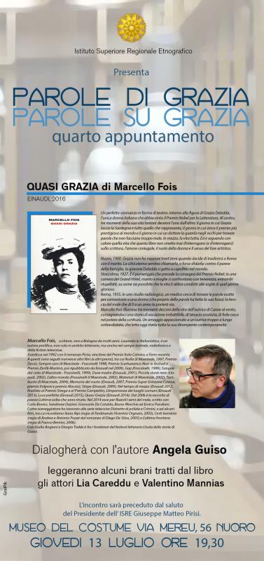 Per l’ultimo appuntamento con il ciclo di presentazioni editoriali dedicate dall’ISRE a Grazia Deledda, giovedì 13 luglio 2017 Marcello Foispresenterà il suo Quasi Grazia.