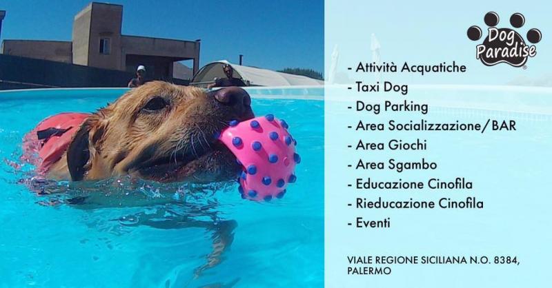IL CENTRO DOG PARADISE è il nuovo punto di ritrovo di Palermo per cani e proprietari in cui svolgere attività ludiche, sportive e di relax insieme agli amici a 4 zampe. Nasce dall'idea di creare qualcosa di innovativo per il divertimento dei cani, conciliandolo anche con il proprio relax. Il parco comprende diverse aree recintate e attrezzate in cui svolgere attività insieme al proprio cane, il tutto in completa sicurezza.