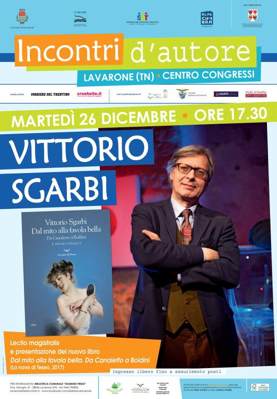Storico dell'arte, critico d'arte, opinionista in molte trasmissioni televisive, politico e fondatore di partiti e movimenti politici dal Partito della Rivoluzione a Intesa popolare fino all'ultima esperienza, il movimento Rinascimento, Sgarbi è stato più volte eletto parlamentare ed ha ricoperto incarichi istituzionali di primo piano. Di poche settimane fa la sua nomina ad Assessore ai Beni Culturali della Regione Siciliana dopo le recenti elezioni che hanno portato alla vittoria il centro-destra. Nomina che è avvenuta quasi in contemporanea (29 novembre) all'uscita del suo ultimo libro (15 novembre), Dal mito alla favola bella. Da Canaletto a Boldini, che verrà presentato a Lavarone martedì 26 dicembre alle ore 17.30 presso il Centro congressi comunale.