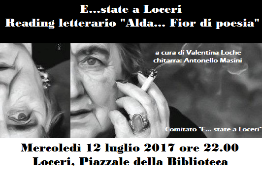 L’appuntamento è mercoledì 12 luglio 2017 alle ore 18.30 presso il Piazzale della Biblioteca di Loceri all’interno della manifestazione “E… state a Loceri” organizzata dall’Amministrazione comunale. Sarà l’attrice Valentina Loche, con l’accompagnamento musicale di Antonello Masini, a dare voce alla biografia e alle poesie di Alda Merini.