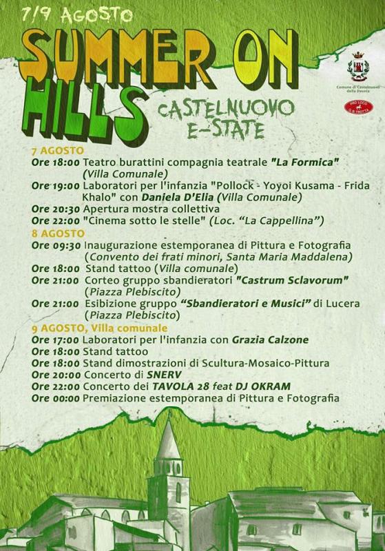 Tre giorni di ARTE E CULTURA a Castelnuovo della Daunia iol 7-8-9 AGOSTO 2017.