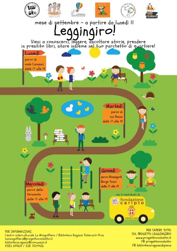 Leggingiro! Culture e Libri in Movimento tra Biblioteche è un progetto presentato dalla Coop. Soc. Progetto Con-tatto in rete con l'Ass. Amici della Mongolfiera per LU.I.S. e il CSV di Pavia che intende incrementare l'offerta culturale per la cittadinanza, promuovere e favorire la lettura da parte dei minori, aumentare il numero di giovani lettori e il prestito di libri, formare lettori volontari che implementino le attività nelle biblioteche cittadine.
