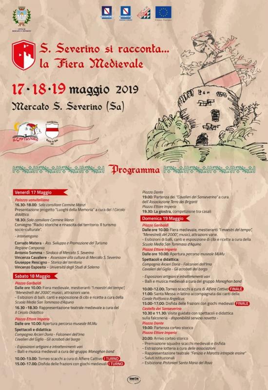 Sabato 18 Maggio in Piazza E. Imperio giochi medievali, esibizioni di artisti di strada, musici, arcieri, falconieri, combattimenti, e altre attrazioni. Apertura della Fiera Medievale a Piazza Garibaldi, con banchi di mestieranti e momenti di recitazione in tema medievale. In serata la prima edizione della Giostra dei Sanseverino, in Piazza E. Imperio, si sfideranno, in un'affascinante competizione antica, 12 cavalieri che correranno per le frazioni di Mercato San Severino e le loro famiglie nobili (casali).