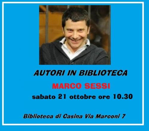 Sabato 21 ottobre ore 10.30 in biblioteca sarà ospite Marco Sessi. Nato il 9 maggio 1963 a Correggio, grande sportivo, ottimo cuoco, come molti aveva un sogno nel cassetto: scrivere un libro. Lo ha realizzato nel 2003 con "Il rovescio dello sport" – casa editrice Sovera. Sempre nel 2003 ha pubblicato anche "Nel regno in bianco e nero" – edizioni fabula –racconto illustrato per bambini. Nel 2008 esce il romanzo "Count down" – casa editrice Andreaoppure. Quest'anno con il suo romanzo "Che bel Natale papà" edito da Albatros vince il 41° Concorso Nazionale di poesia e narrativa Città di Fucecchio.